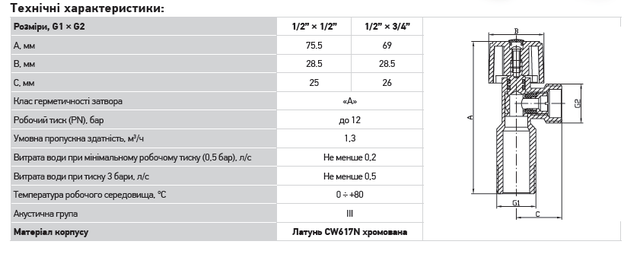 | Діаметр | 1/2"х1/2" |