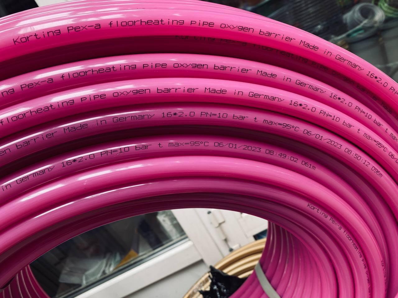Труба для теплої підлоги KORTING PEX-a із зшитого поліетилену визнана великими монтажними організаціями. Її міцність та надійність гідні захоплення. Еластичність, гнучкість, чудові фізичні параметри зносостійкості та довговічності, п'ятишарова структура – це технологія виготовлення PEX-A.